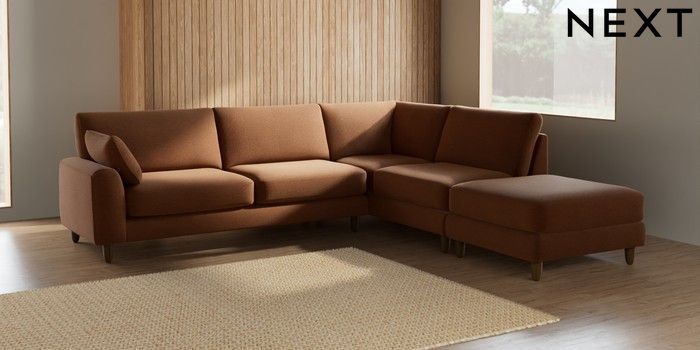 7.2.6 Buy Campbell Large Open End Corner Chaise - Right Hand Ripple Chenille Mid Rust Brown High Leg - Mid from the Next UK online shop Click here to use our accessible website