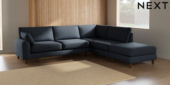 7.2.6 Buy Campbell Large Open End Corner Chaise - Right Hand Tweedy Chenille Navy Blue High Leg - Mid from the Next UK online shop Click here to use our accessible website