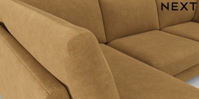 7.0.3 Buy Campbell Medium Corner Chaise - Left Hand Luxe Chenille Honey Yellow High Leg - Dark from the Next UK online shop Click here to use our accessible website