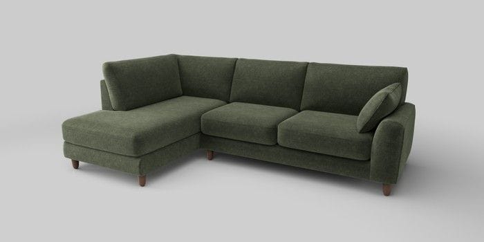 6.12.1 Buy Campbell Medium Corner Chaise - Left Hand Luxe Chenille Mid Green High Leg - Mid from the Next UK online shop Click here to use our accessible website