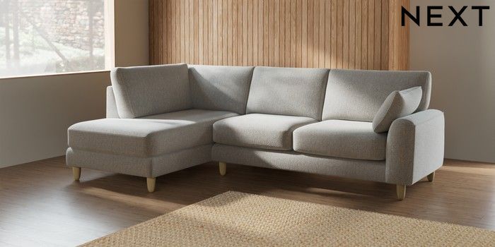 7.2.6 Buy Campbell Medium Corner Chaise - Left Hand Multi Weave Light Blue High Leg - Light from the Next UK online shop Click here to use our accessible website