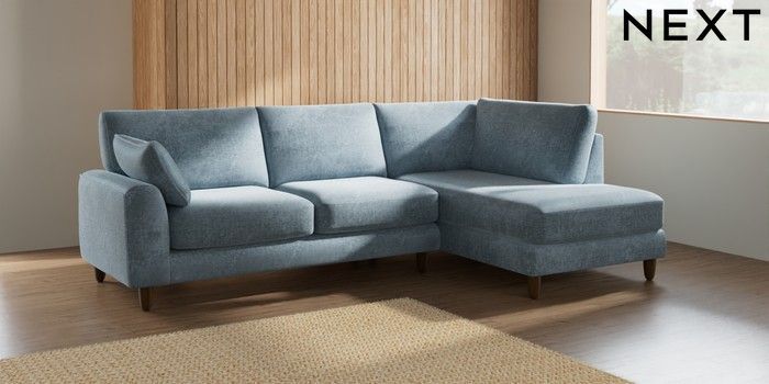 7.2.6 Buy Campbell Medium Corner Chaise - Right Hand Plush Chenille Light Blue High Leg - Mid from the Next UK online shop Click here to use our accessible website