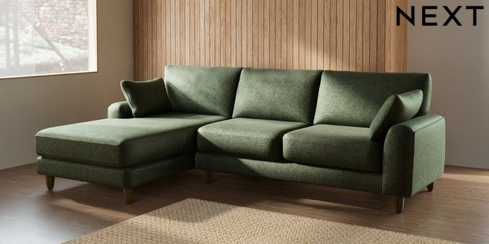 7.2.6 Buy Campbell Medium Sofa Chaise - Left Hand Boucle Chenille Dark Moss Green High Leg - Mid from the Next UK online shop Click here to use our accessible website