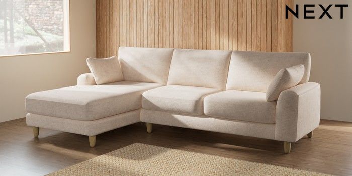 7.2.6 Buy Campbell Medium Sofa Chaise - Left Hand Boucle Chenille Oyster High Leg - Light from the Next UK online shop Click here to use our accessible website