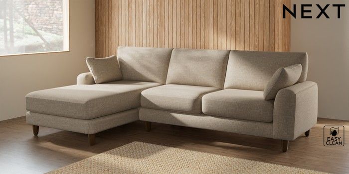 7.2.6 Buy Campbell Medium Sofa Chaise - Left Hand Boucle Weave Easy Clean Dark Natural High Leg - Mid from the Next UK online shop Click here to use our accessible website