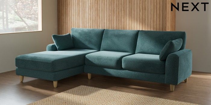 7.2.6 Buy Campbell Medium Sofa Chaise - Left Hand Chunky Chenille Mid Teal Green High Leg - Light from the Next UK online shop Click here to use our accessible website