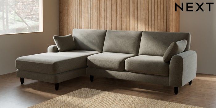 7.2.6 Buy Campbell Medium Sofa Chaise - Left Hand Chunky Marl Light Olive Green High Leg - Dark from the Next UK online shop Click here to use our accessible website