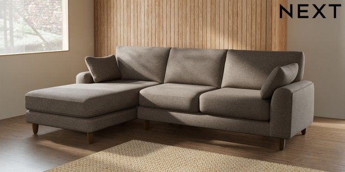 7.2.6 Buy Campbell Medium Sofa Chaise - Left Hand Chunky Weave Dark Natural High Leg - Mid from the Next UK online shop Click here to use our accessible website