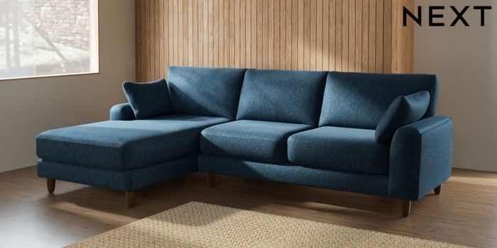 7.2.6 Buy Campbell Medium Sofa Chaise - Left Hand Cotswold Chenille Dark Blue High Leg - Mid from the Next UK online shop Click here to use our accessible website