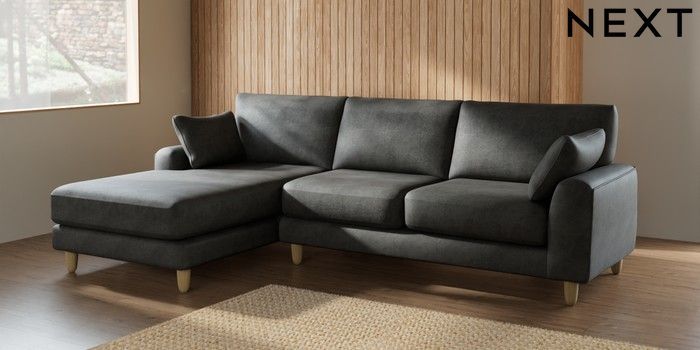 7.2.6 Buy Campbell Medium Sofa Chaise - Left Hand Monza Faux Leather Easy Clean Dark Grey High Leg - Light from the Next UK online shop Click here to use our accessible website