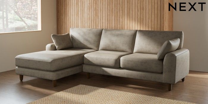7.2.6 Buy Campbell Medium Sofa Chaise - Left Hand Monza Faux Leather Easy Clean Mink Brown High Leg - Mid from the Next UK online shop Click here to use our accessible website