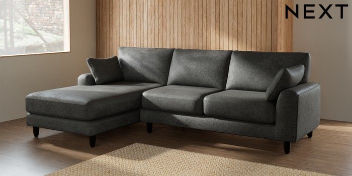 7.2.6 Buy Campbell Medium Sofa Chaise - Left Hand Plush Chenille Dark Grey High Leg - Dark from the Next UK online shop Click here to use our accessible website