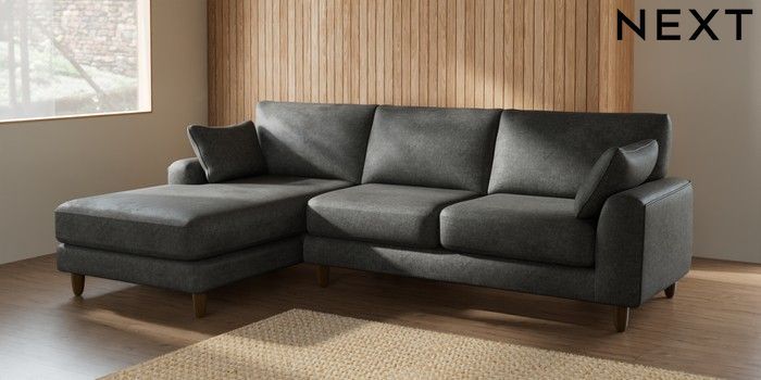 7.2.6 Buy Campbell Medium Sofa Chaise - Left Hand Plush Chenille Dark Grey High Leg - Mid from the Next UK online shop Click here to use our accessible website