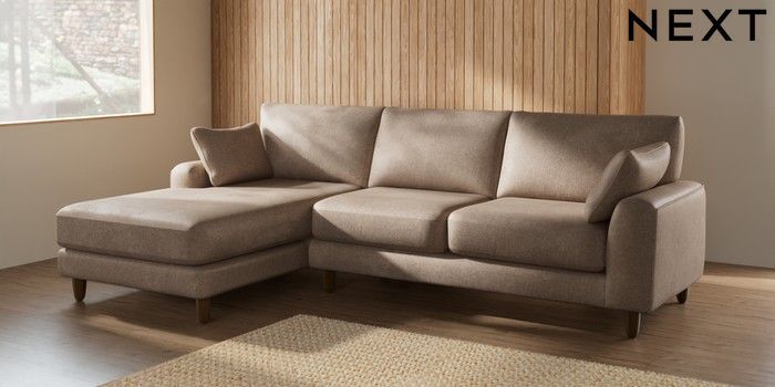 7.2.6 Buy Campbell Medium Sofa Chaise - Left Hand Plush Chenille Mid Natural High Leg - Mid from the Next UK online shop Click here to use our accessible website
