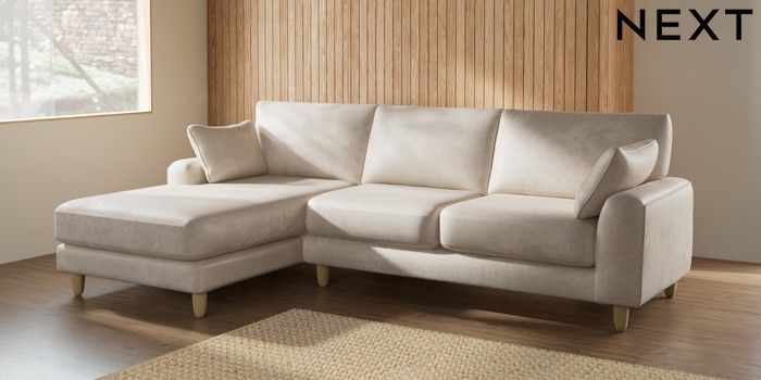7.2.6 Buy Campbell Medium Sofa Chaise - Left Hand Plush Chenille Oyster High Leg - Light from the Next UK online shop Click here to use our accessible website