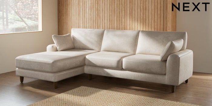 7.2.6 Buy Campbell Medium Sofa Chaise - Left Hand Plush Chenille Oyster High Leg - Mid from the Next UK online shop Click here to use our accessible website