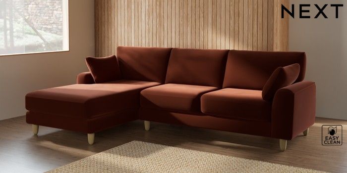 7.2.6 Buy Campbell Medium Sofa Chaise - Left Hand Plush Velvet Easy Clean Ginger Orange High Leg - Light from the Next UK online shop Click here to use our accessible website