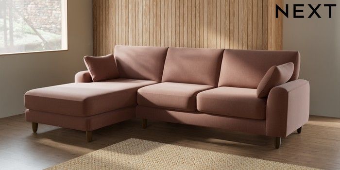 7.2.6 Buy Campbell Medium Sofa Chaise - Left Hand Relaxed Linen Look Light Rust Brown High Leg - Mid from the Next UK online shop Click here to use our accessible website