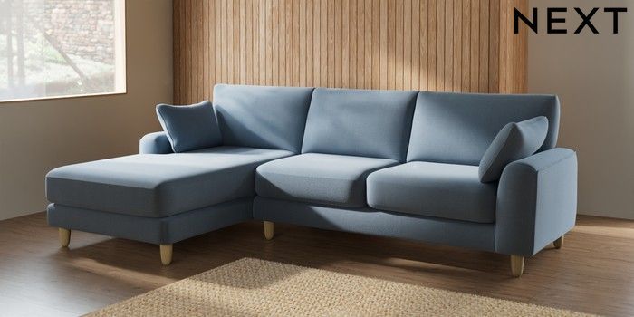 7.2.6 Buy Campbell Medium Sofa Chaise - Left Hand Relaxed Linen Look Mid Blue High Leg - Light from the Next UK online shop Click here to use our accessible website