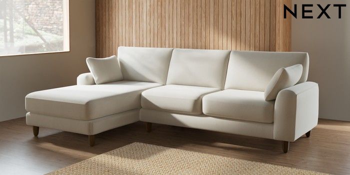 7.2.6 Buy Campbell Medium Sofa Chaise - Left Hand Relaxed Linen Look Oyster High Leg - Mid from the Next UK online shop Click here to use our accessible website
