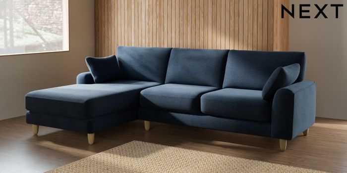 7.2.6 Buy Campbell Medium Sofa Chaise - Left Hand Ripple Chenille Dark Blue High Leg - Light from the Next UK online shop Click here to use our accessible website