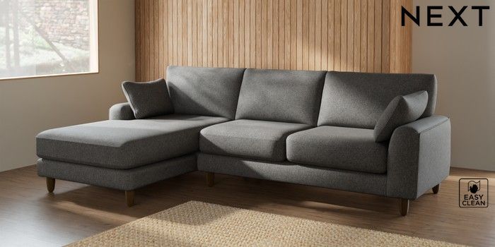 7.2.6 Buy Campbell Medium Sofa Chaise - Left Hand Tweedy Blend Easy Clean Dark Grey High Leg - Mid from the Next UK online shop Click here to use our accessible website