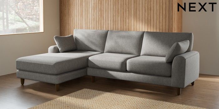 7.2.6 Buy Campbell Medium Sofa Chaise - Left Hand Tweedy Chenille Mid Grey High Leg - Mid from the Next UK online shop Click here to use our accessible website