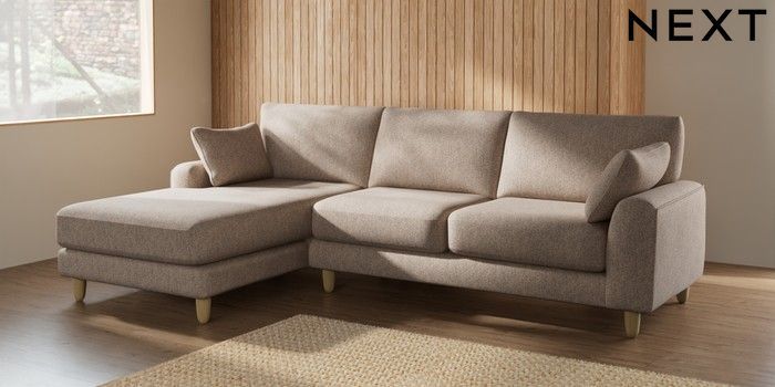 7.2.6 Buy Campbell Medium Sofa Chaise - Left Hand Tweedy Chenille Mid Natural High Leg - Light from the Next UK online shop Click here to use our accessible website