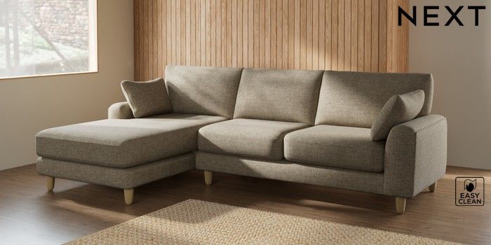 7.2.6 Buy Campbell Medium Sofa Chaise - Left Hand Woven Chenille Easy Clean Mid Natural High Leg - Light from the Next UK online shop Click here to use our accessible website