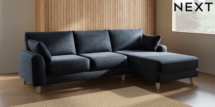 7.2.6 Buy Campbell Medium Sofa Chaise - Right Hand Boucle Chenille Dark Slate Blue High Leg - Light from the Next UK online shop Click here to use our accessible website