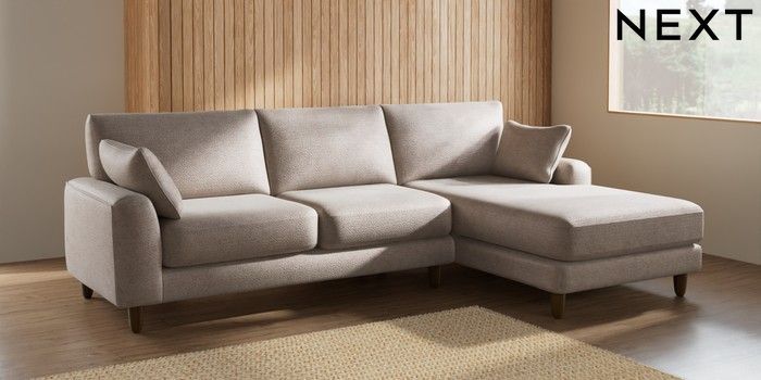 7.2.6 Buy Campbell Medium Sofa Chaise - Right Hand Boucle Chenille Light Natural High Leg - Mid from the Next UK online shop Click here to use our accessible website