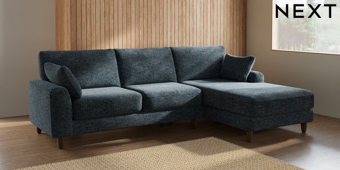 7.2.6 Buy Campbell Medium Sofa Chaise - Right Hand Chunky Chenille Dark Navy Blue High Leg - Mid from the Next UK online shop Click here to use our accessible website