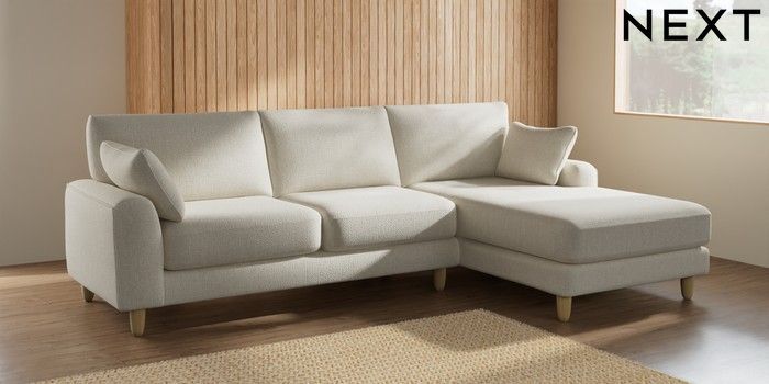7.2.6 Buy Campbell Medium Sofa Chaise - Right Hand Chunky Texture Oyster High Leg - Light from the Next UK online shop Click here to use our accessible website