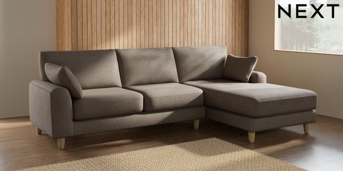 7.2.6 Buy Campbell Medium Sofa Chaise - Right Hand Chunky Weave Dark Natural High Leg - Light from the Next UK online shop Click here to use our accessible website