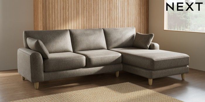7.2.6 Buy Campbell Medium Sofa Chaise - Right Hand Cotswold Chenille Mid Mink Brown High Leg - Light from the Next UK online shop Click here to use our accessible website