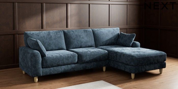 7.2.6 Buy Campbell Medium Sofa Chaise - Right Hand Distressed Velour Midnight Blue High Leg - Light from the Next UK online shop Click here to use our accessible website