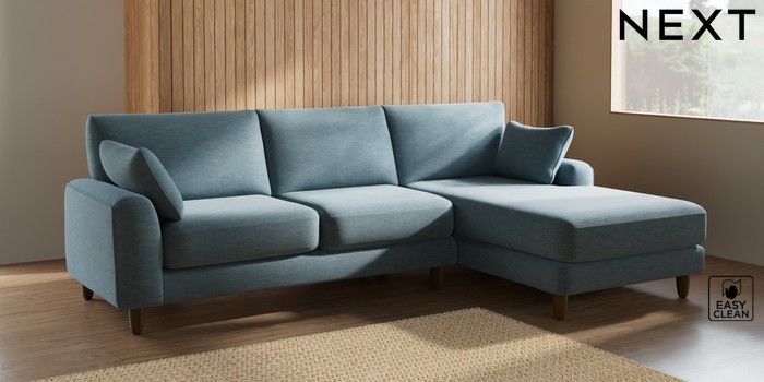 7.2.6 Buy Campbell Medium Sofa Chaise - Right Hand Fine Chenille Easy Clean Mid Blue High Leg - Mid from the Next UK online shop Click here to use our accessible website