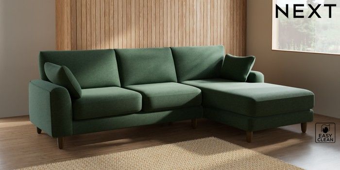 7.2.6 Buy Campbell Medium Sofa Chaise - Right Hand Fine Chenille Easy Clean Mid Khaki Green High Leg - Mid from the Next UK online shop Click here to use our accessible website