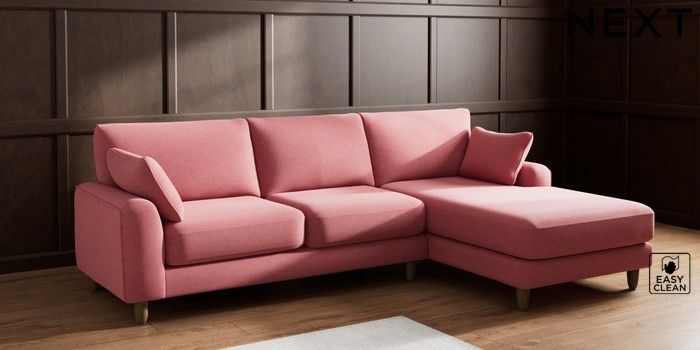 7.2.6 Buy Campbell Medium Sofa Chaise - Right Hand Fine Chenille Easy Clean Mid Pink High Leg - Mid from the Next UK online shop Click here to use our accessible website