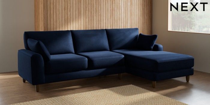 7.2.6 Buy Campbell Medium Sofa Chaise - Right Hand Luxe Chenille Navy Blue High Leg - Mid from the Next UK online shop Click here to use our accessible website