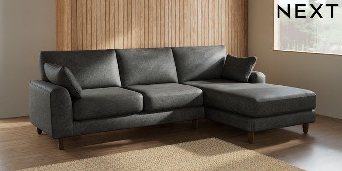 7.2.6 Buy Campbell Medium Sofa Chaise - Right Hand Plush Chenille Dark Grey High Leg - Mid from the Next UK online shop Click here to use our accessible website