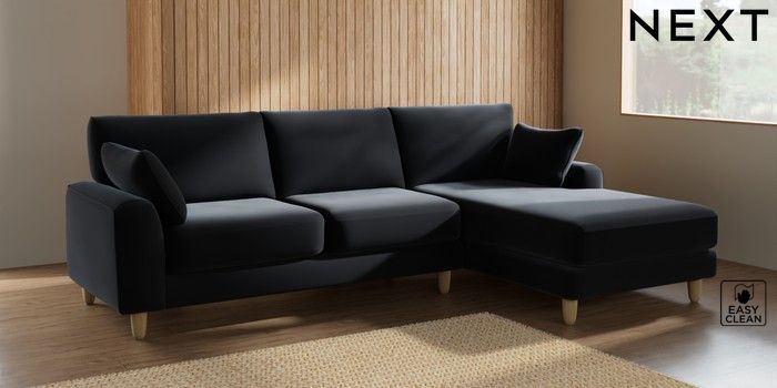 7.2.6 Buy Campbell Medium Sofa Chaise - Right Hand Plush Velvet Easy Clean Charcoal Grey High Leg - Light from the Next UK online shop Click here to use our accessible website