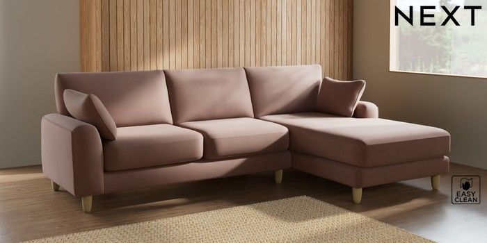 7.2.6 Buy Campbell Medium Sofa Chaise - Right Hand Plush Velvet Easy Clean Mid Natural High Leg - Light from the Next UK online shop Click here to use our accessible website