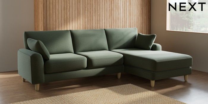 7.2.6 Buy Campbell Medium Sofa Chaise - Right Hand Relaxed Linen Look Dark Green High Leg - Light from the Next UK online shop Click here to use our accessible website
