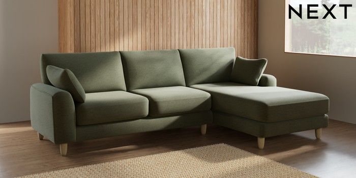 7.2.6 Buy Campbell Medium Sofa Chaise - Right Hand Ripple Chenille Mid Moss Green High Leg - Light from the Next UK online shop Click here to use our accessible website