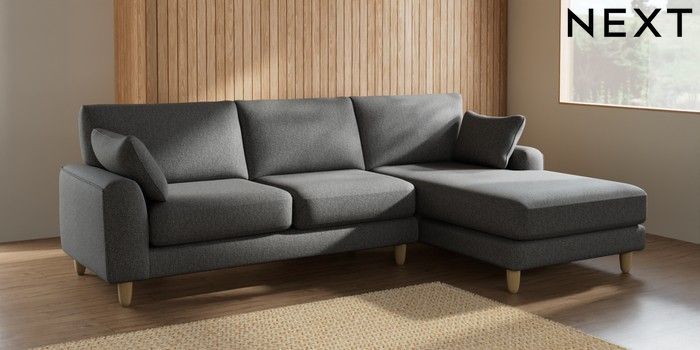 7.2.6 Buy Campbell Medium Sofa Chaise - Right Hand Tweedy Chenille Dark Grey High Leg - Light from the Next UK online shop Click here to use our accessible website