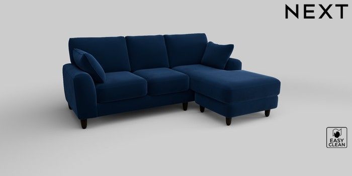 6.12.1 Buy Campbell Small Sofa Chaise - Universal Plush Velvet Easy Clean Navy Blue High Leg - Dark from the Next UK online shop Click here to use our accessible website