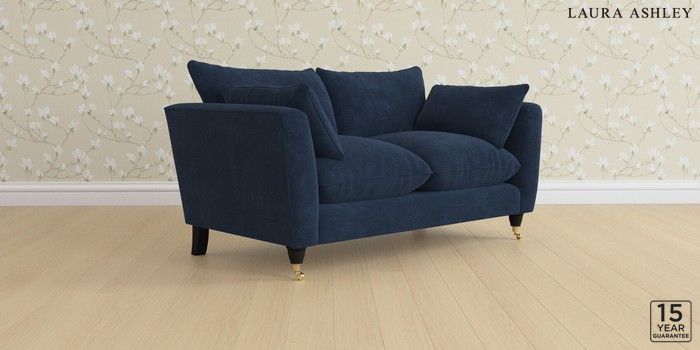 6.12.1 Buy Casterton by Laura Ashley 2 Seater Sofa Alwyn Velvet Midnight Navy Low Brass Castor - Black from the Next UK online shop Click here to use our accessible website