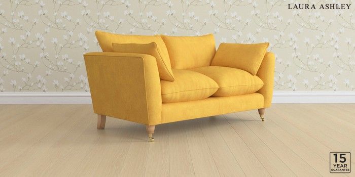 6.12.1 Buy Casterton by Laura Ashley 2 Seater Sofa Bainton Ochre Yellow Low Brass Castor - Light Oak from the Next UK online shop Click here to use our accessible website