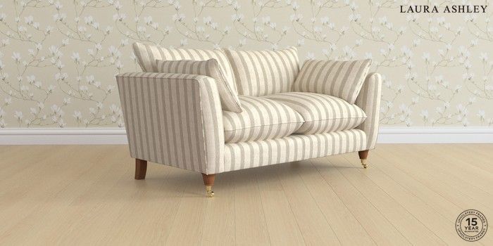 6.12.1 Buy Casterton by Laura Ashley 2 Seater Sofa Kinsham Stripe Natural Low Brass Castor - Teak from the Next UK online shop Click here to use our accessible website
